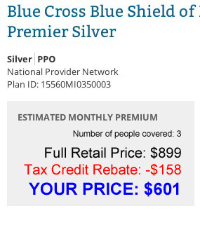 • HOWEVER, the tax credit for this particular policy, in our particular zip code, with our particular household, has also gone up noticably: