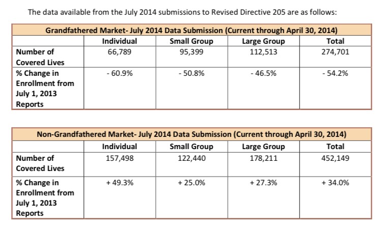 Anyway, for this year, I still have very little off-exchange data so far; only Oregon is providing regular updates on their current off-exchange enrollments, with a few other states reporting them from various points in 2014...which is handy, but doesn't tell us much about the 2015 situation, where things have changed dramatically. Today I can add Louisiana to the list; they've provided me with their off-exchange numbers, but they're only current through 4/30/14, which is basically immediately after the close of the 2014 open enrollment period. With attrition/etc this likely shifted by the end of the year, and 2015 is no doubt very different as well, but it's all I have for now.