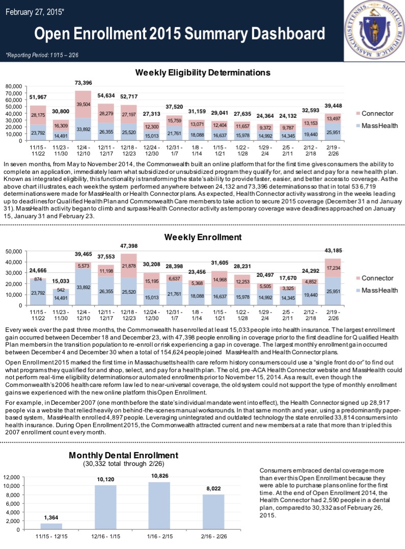 Massachusetts: Final #OE2 Report: 144.3K QHPs (87% Paid), 286K Medicaid