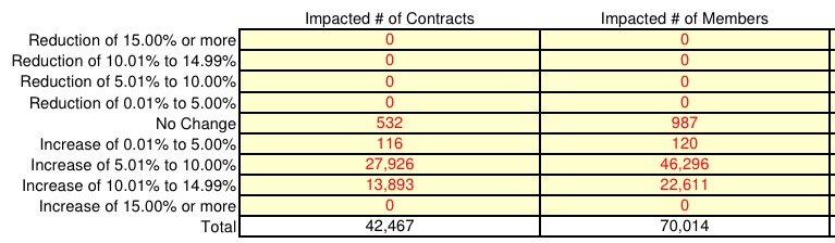 As you can see, about 1.6% of enrollees would see an increase of 5% or less, while 32% would see a 10-15% increase, with the remaining 66% between 5-10%.