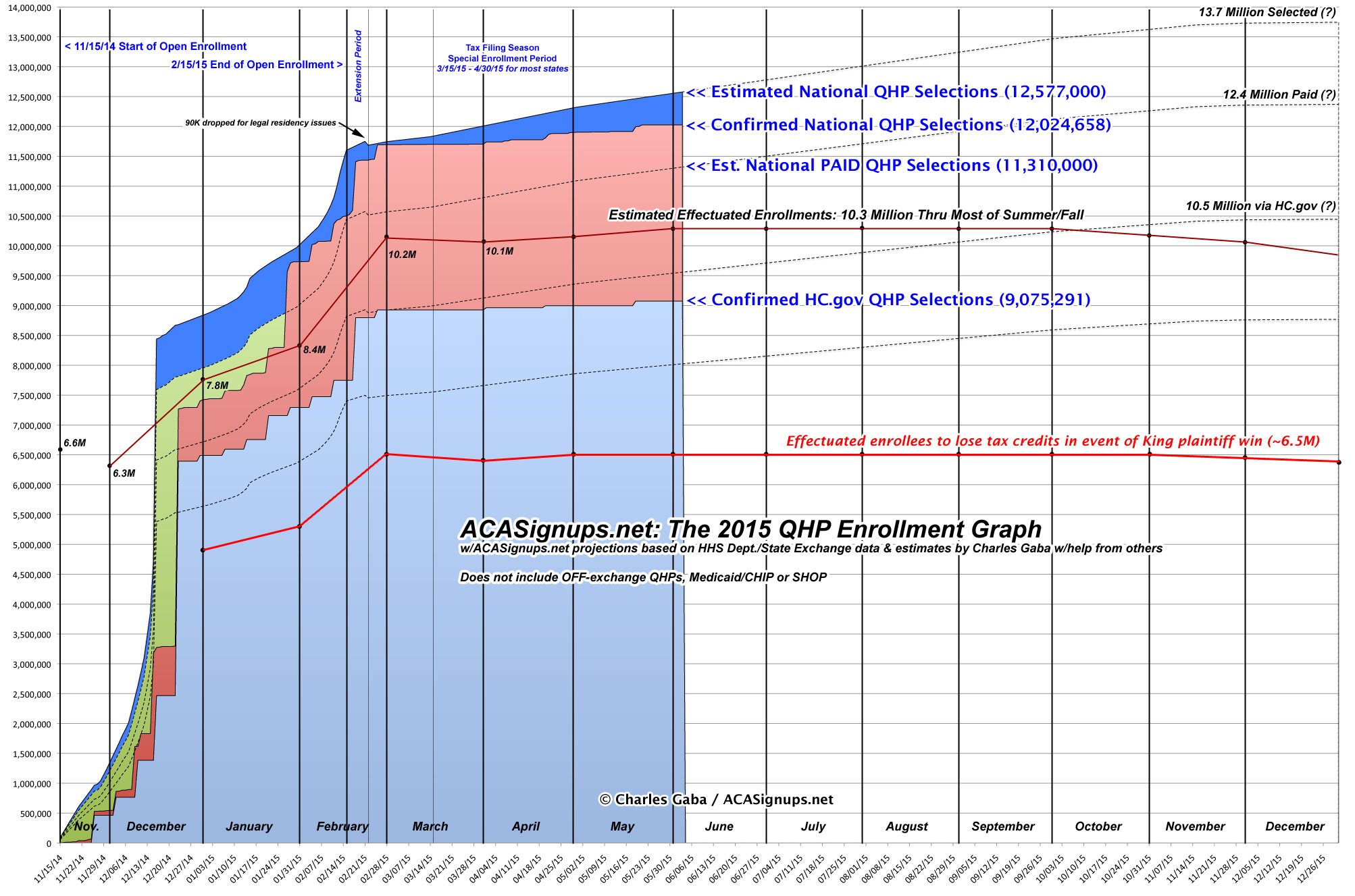 Among the major takeaways was that as of 3/31/15, effectuated (ie, active/paid for) private policy enrollments via the ACA exchanges stood at 10,187,197 people.