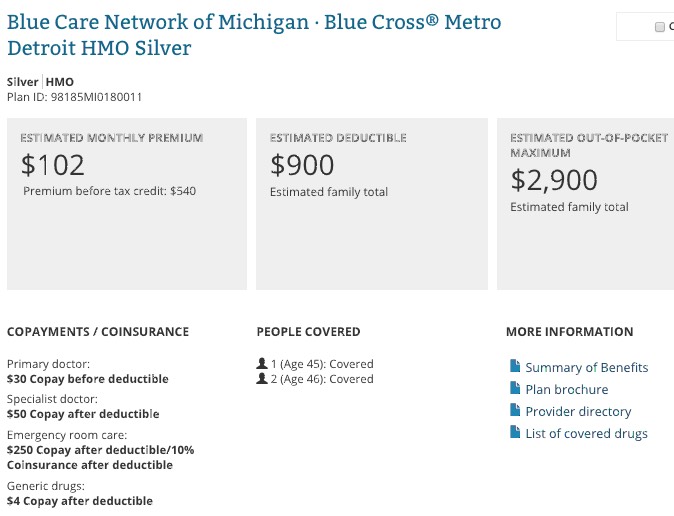 THAT'S more like it. They'd have to come up with $102/month for the premiums, but check out their deductible and maximum out of pocket total: Just $900 and $2,900 respectively.