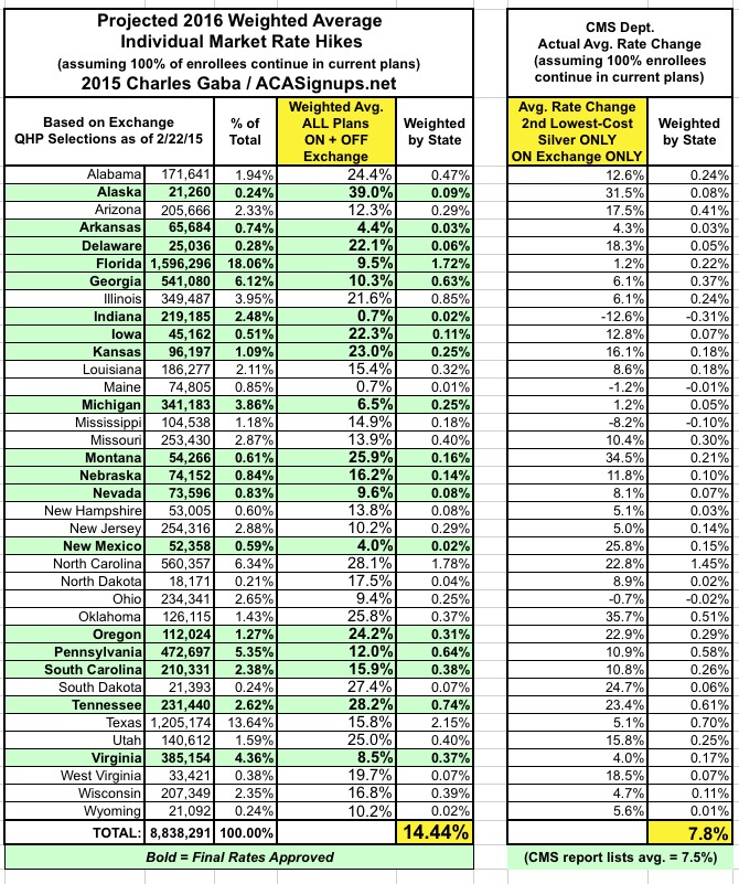 - First of all, the CMS report only includes the 37 states run through HealthCare.Gov. It does not include the 14 states which ran their own exchanges for 2015 (Hawaii is moving to HCgov for 2016, but still had it's own exchange for this report)