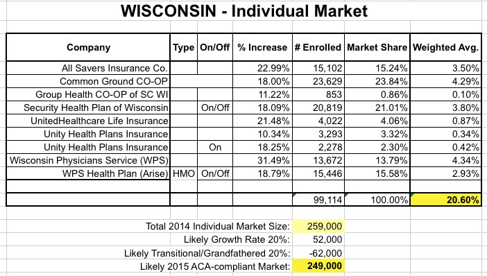 Anyway, the net result of all of this is that Wisconsin's weighted average increase now stands at 20.6% for the individual market. While this is higher than I had previously thought, at least I'm a lot more confident about the number.