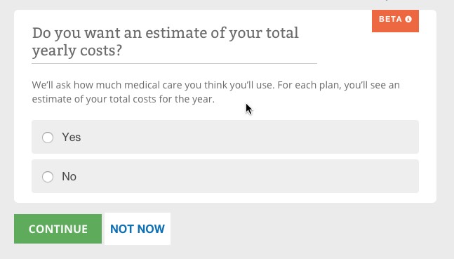 The way it works is pretty clever (and presumably modelled after similar tools on Covered California and a couple of other State-Based Exchanges. You choose from "Low", "Medium" or "High" expected medical needs for the upcoming year for each person in the household.