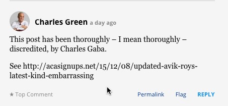 I also found it amusing that there actually is a reference/shout-out to me connected to the article after all...in the form of a "Top Comment" made by one Charles Green: