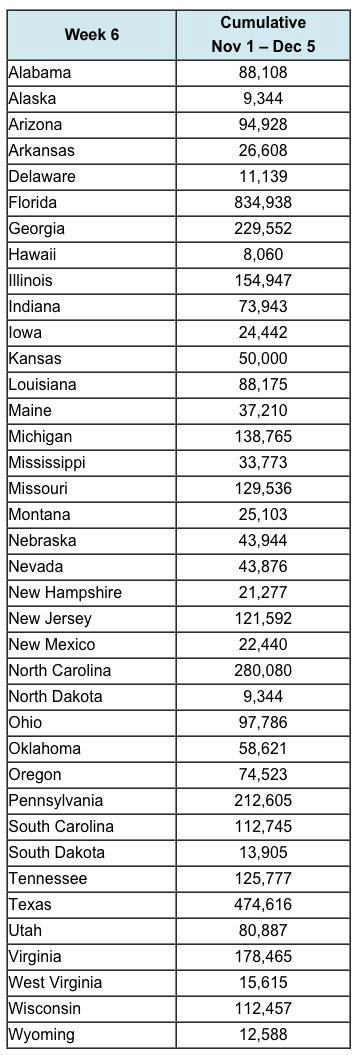 I'm sticking to my guns for Week 6, projecting an even 1.5 million QHP selections via HealthCare.Gov, bringing the grand total to 4.34 million as of 12/12.