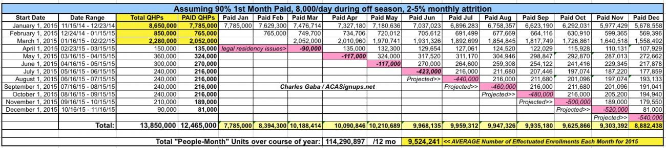 Last summer I projected that the actual monthly average enrollment for 2015 would come in at more like 9.5-9.7 million people (click the chart for a higher-res version):