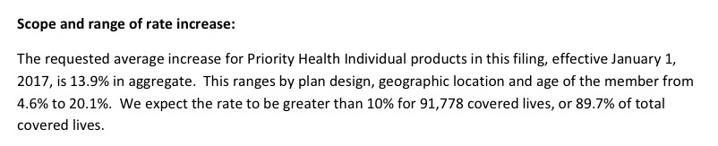 • While I have the data for "Priority Health Plan", their counterpart, "Priority Health Insurance Co." has an unknown number of additional enrollees...and an unknown rate hike request (I don't know if it just hasn't been added to the database yet or what).