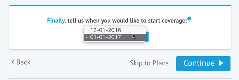 You can comparison shop, but there's no "start date" option listed, and the alerts below certainly make it seem like the current window shopping is purely for those seeking Special Enrollment Period coverage for the balance of 2016, not 2017.