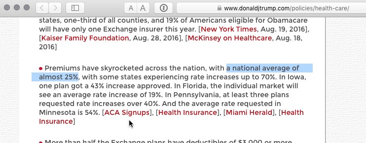 As you can see, to his "credit", Trump actually did attempt to credit ACASignups.net as his source. However, he couldn't even do that right; he listed the link as ACA.Signups.net instead of ACASignups.net. I'm sure the folks at Signups.net received a lot of confused visitors yesterday.
