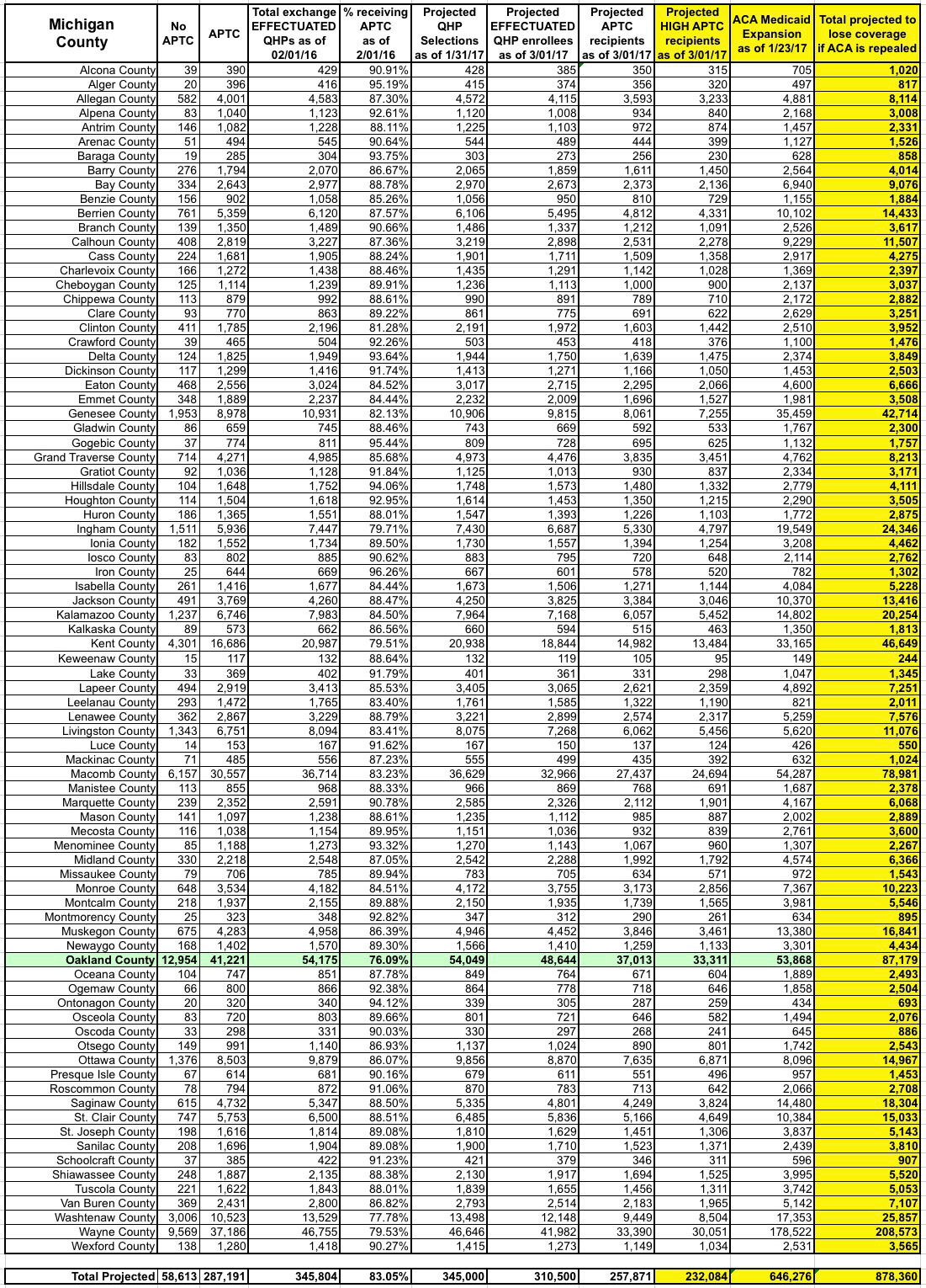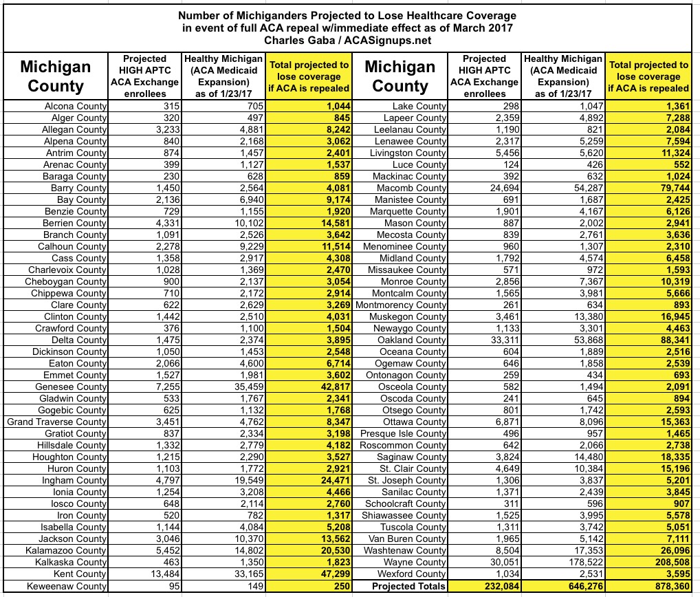 Michigan: Here's the ~878,000 residents who could lose healthcare coverage...BY COUNTY