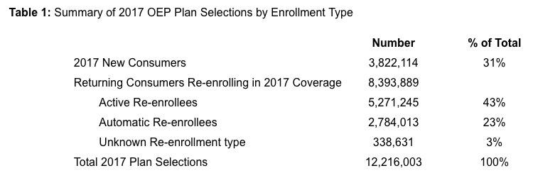 Moments ago, CMS released the official 2017 Open Enrollment Period final enrollment report. They also released a nice set of bonus data sets at the state, county and even zip code levels, which was unexpected (usually they don't release these until later in the year).