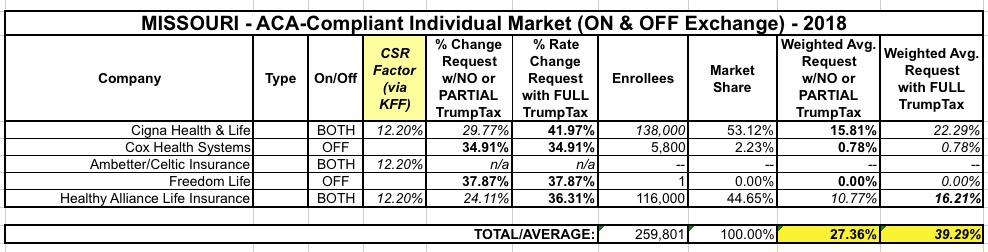 Missouri carriers are asking for a 27.4% average rate increase assuming CSRs are paid, and 39.3% if they aren't.