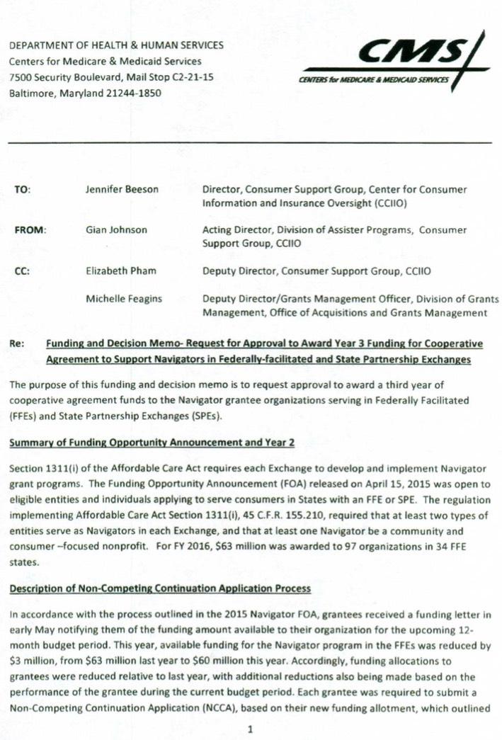 There's also an additional document semi-related to this issue: A fund transfer authorization memo cutting $21,000,000 from the Enrollment Assister program and applying it to the Special Enrollment Period Verification Program.