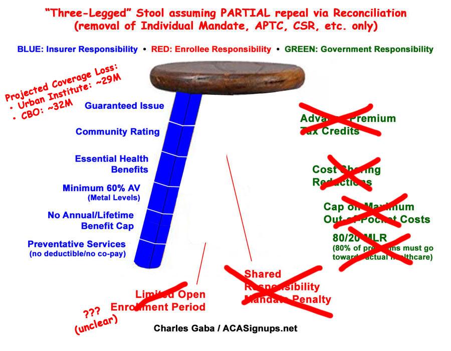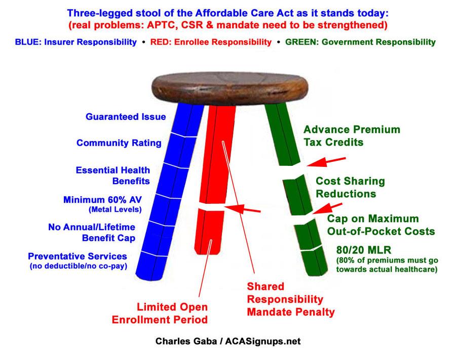 Once again, here's what the "3-Legged Stool" was supposed to look like under the Affordable Care Act: