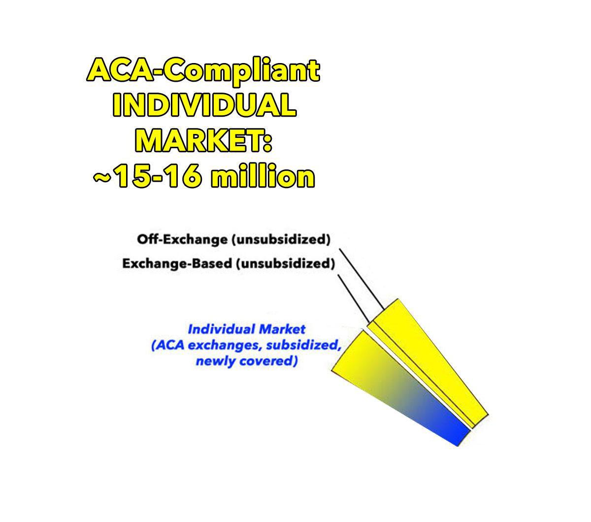 The Three-Legged Stool is about the Individual Market: People who buy private health insurance policies for themselves and their families, either through the ACA exchanges like HealthCare.Gov or directly from an insurance carrier. A couple million are enrolled in grandfathered or transitional policies from before ACA regulations went into effect, and about 800,000 in New York and Minnesota are enrolled in something called the Basic Health Program, but most of them, around 15 million--are in ACA-compliant policies, either ON or OFF the ACA exchanges.