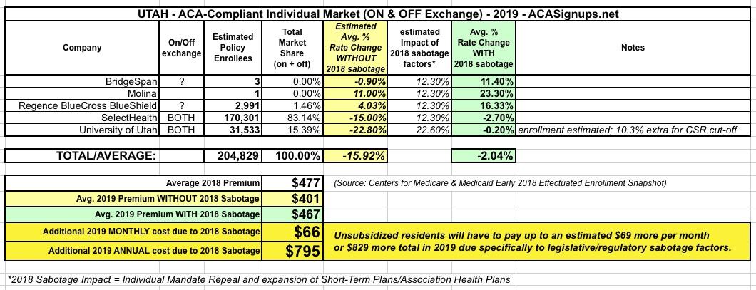 Assuming my estimates of the impact of the individual mandate being repealed and short-term & association health plans being expanded are accurate (10 - 14% depending on the state), this means that unsubsidized enrollees will be paying an average of $800 - $1,100 more apiece next year than they'd otherwise have to.