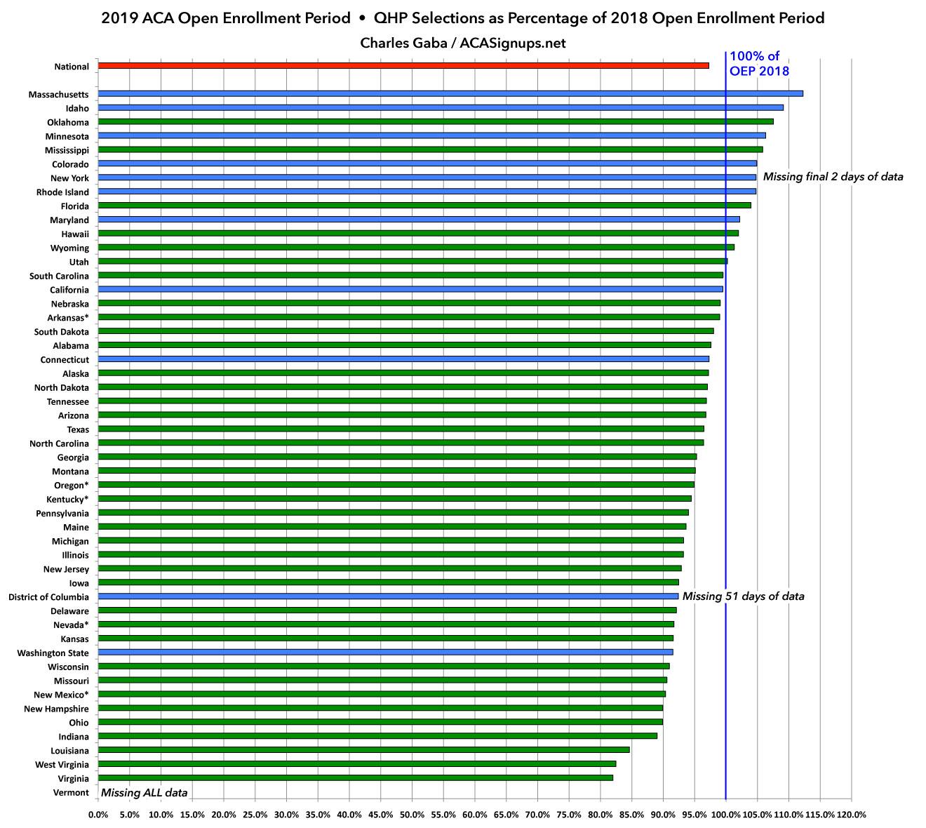 I still expect the final national QHP selection tally to increase by around 35,000 more when the dust settles, including perhaps 1,000 more from DC, 5K - 10K more from New York and around 28,000 from Vermont (which hasn't reported anything so far this Open Enrollment Period). If so, the official total should end up around 11.47 million nationally, with the 12 State-Based exchanges coming in around 1.6% higher than last year (an all-time high for them collectively) vs. the 39 states on the federal exchange, which dropped another 3.8% this year. Nationally, the official total should end up around 280,000 enrollees short of last year.