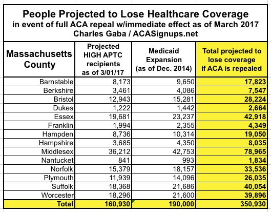 Massachusetts: Here's the ~351,000 who could lose coverage, by County and Congressional District