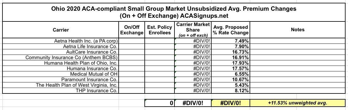 Ohio: APPROVED 2020 #ACA exchange avg. rate changes: 7.7% *decrease*