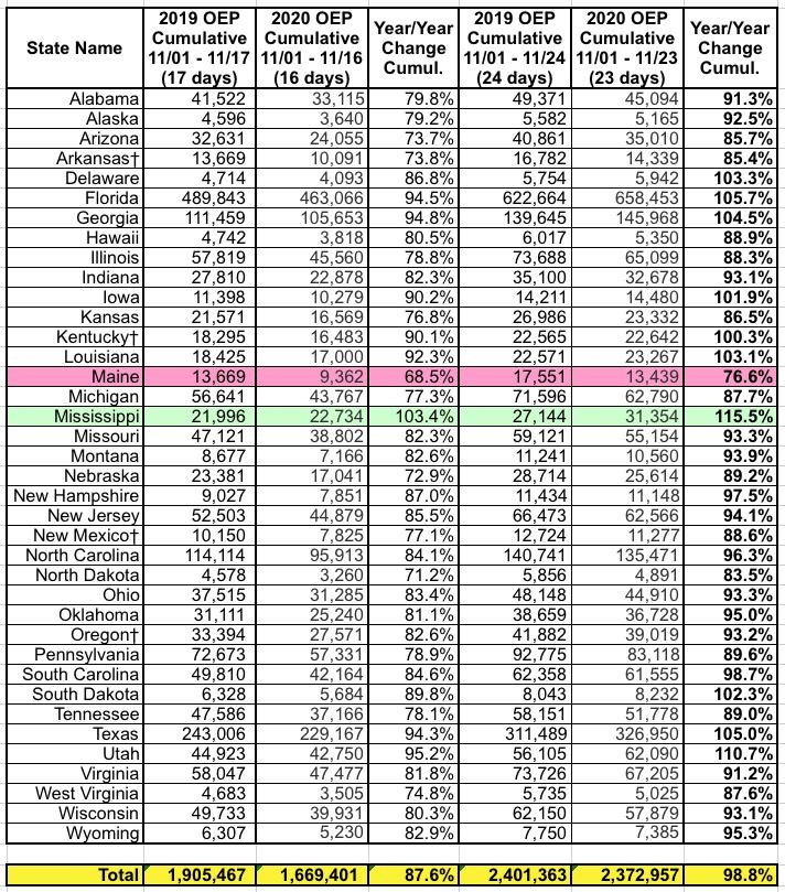In other words, by all rights, Mississippi should be performing almost exactly as they did last year...but enrollments are up 15.5% to date. Huh.