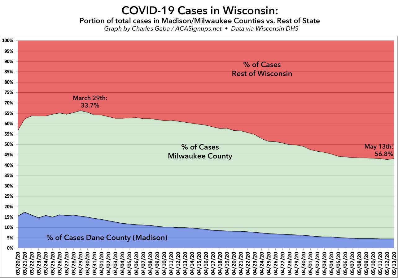 In late March, only 1/3 of all Wisconsin cases were outside of these two counties. This week over 55% are.