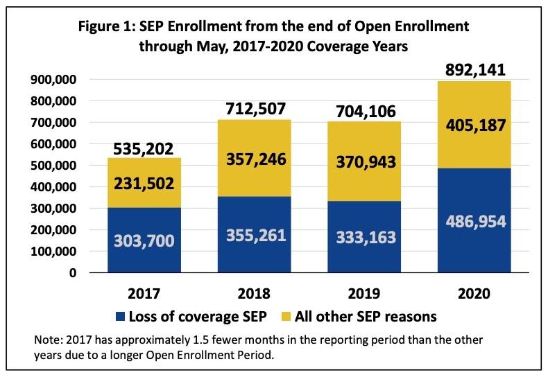 - 2020: 892,141 total SEP enrollments from 12/16 - 5/21 = 5342/day over 167 days
