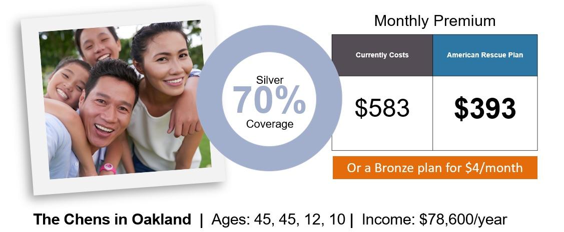 • The American Rescue Plan provides new and expanded financial help that will dramatically lower health insurance premiums for people who purchase coverage through Covered California