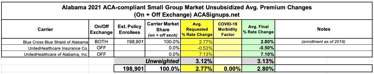 Alabama: *Approved* avg. 2021 #ACA premiums: +5.1% indy; +3.1% sm. group
