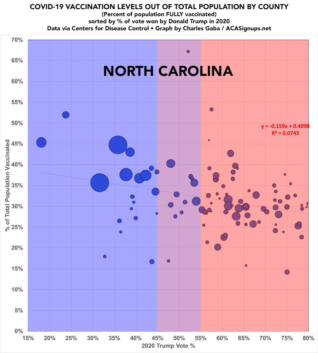 North Carolina: #COVID19 vaccination rates by county & partisan lean