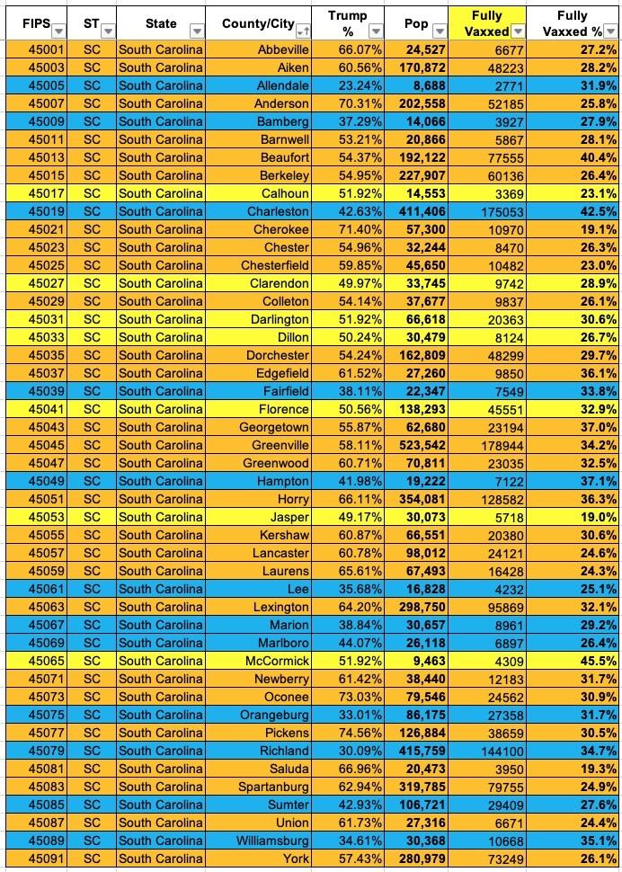 South Carolina: #COVID19 vaccination rates by county & partisan lean