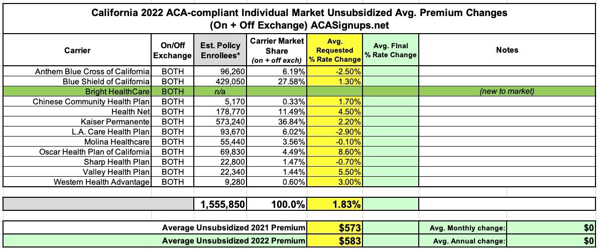 California: @CoveredCA Announces avg. 2022 #ACA rate increase of just 1.8% with full year of #AmRescuePlan benefits & more choices
