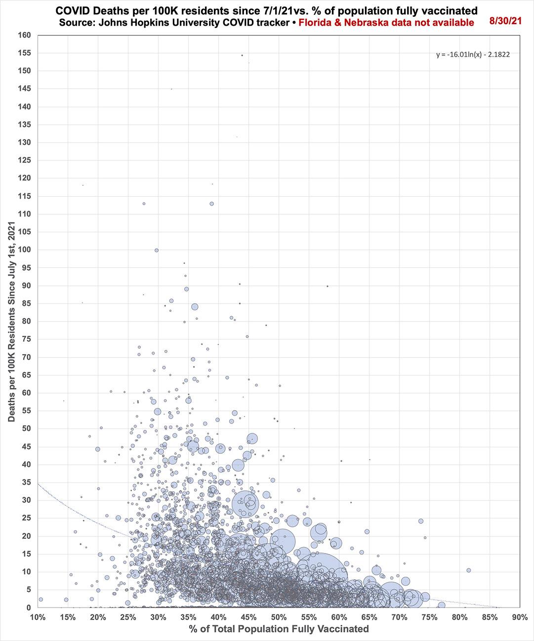 Here's a summary of where things stand on both the case and death rate front as of 8/29/21. The denominator (population size) has been adjusted to remove Nebraska for both cases & deaths and Florida for deaths only: