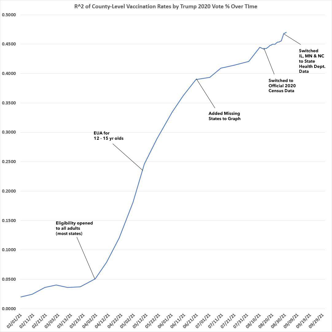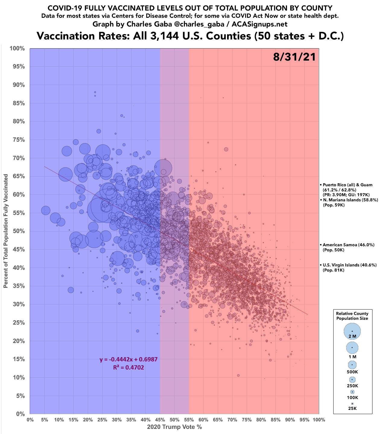 Weekly Update: U.S. #COVID19 vaccination levels by COUNTY & Partisan Lean