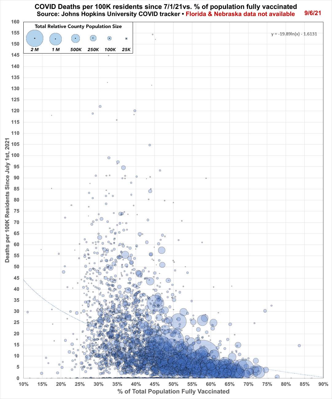 Today I wanted to take a look at the same data from a nonpartisan perspective...by simply measuring new COVID case and death rates against the vaccination rate of every county regardless of its red/blue status.