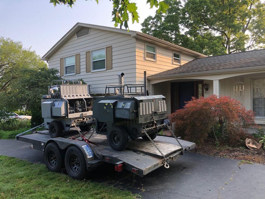 So. Friday morning at 7am, they show up hauling a trailer with an industrial-size heater...and by "industrial size", I mean the type of equipment used to de-ice jetliners at airports: