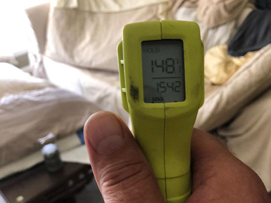 They had set up remote sensors throughout the house which send signals to an app on their phone (of course) to let them know how hot every area of the house is. Thye also use infrared cameras, which as an aside do a good job of letting us know what parts of the house need more insulation. It takes a good 5-6 hours to heat up the entire house from top to bottom.