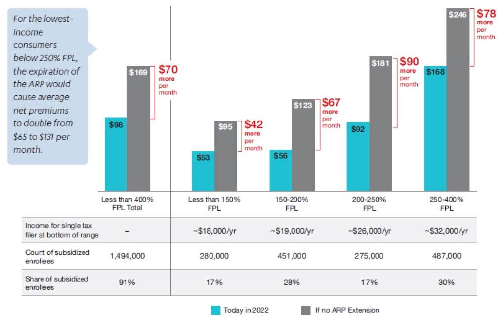 - Middle-income consumers would lose all federal financial help, and their premiums would increase by an average of $272 per month if Congress does not act to extend the law.