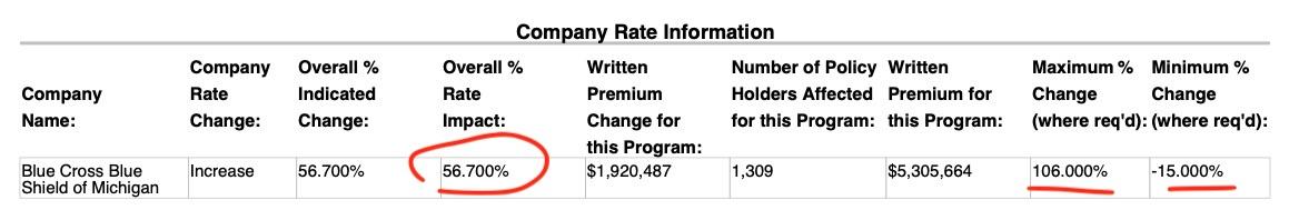 We've also confirmed directly with BCBSM that Oakland University is indeed still sticking with BCBSM (which is good); that yes, the 70% rate hike is accurate (which is not good); and that no, the OU BCBSM plan is not self-funded; it's effectively a standard, underwritten group plan (which is neither good nor bad, just noteworthy).