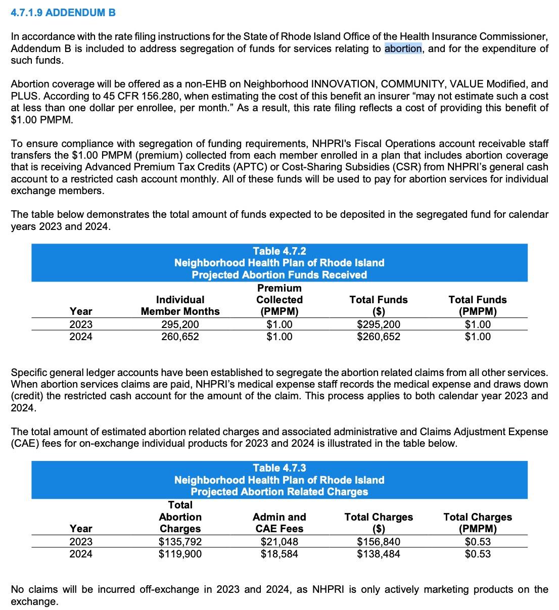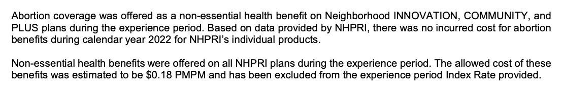 It's also worth noting that this is the first time I've happened to see the ACA's absurd (but codified) "segregated abortion fee" specifically referenced in a rate filing memo. It's probably been in many of them, but I've never noticed it before: