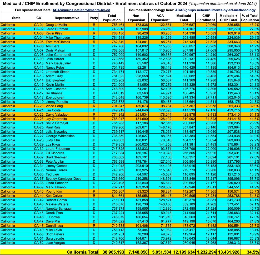 In all cases, the total Medicaid & CHIP enrollment data is as of October 2024 via the Centers for Medicare & Medicaid Services (CMS) prior to the Trump Admin taking it over.