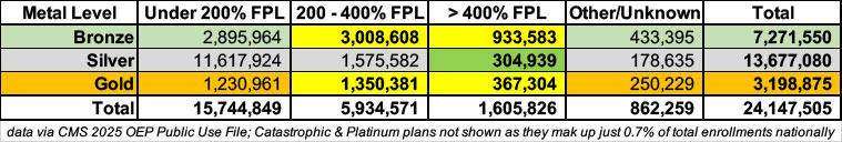 Meanwhile, the only ones who are harmed by it via higher premiums are around 300,000 unsubsidized enrollees who happen to have selected Silver plans...and the only reason many of them would be unsubsidized to begin with, ironically, if the enhanced tax credits actually expire less than three weeks from today.