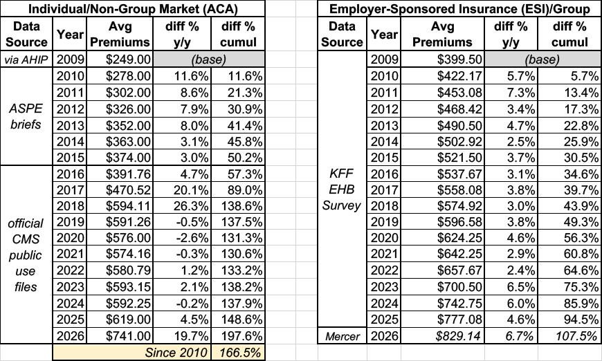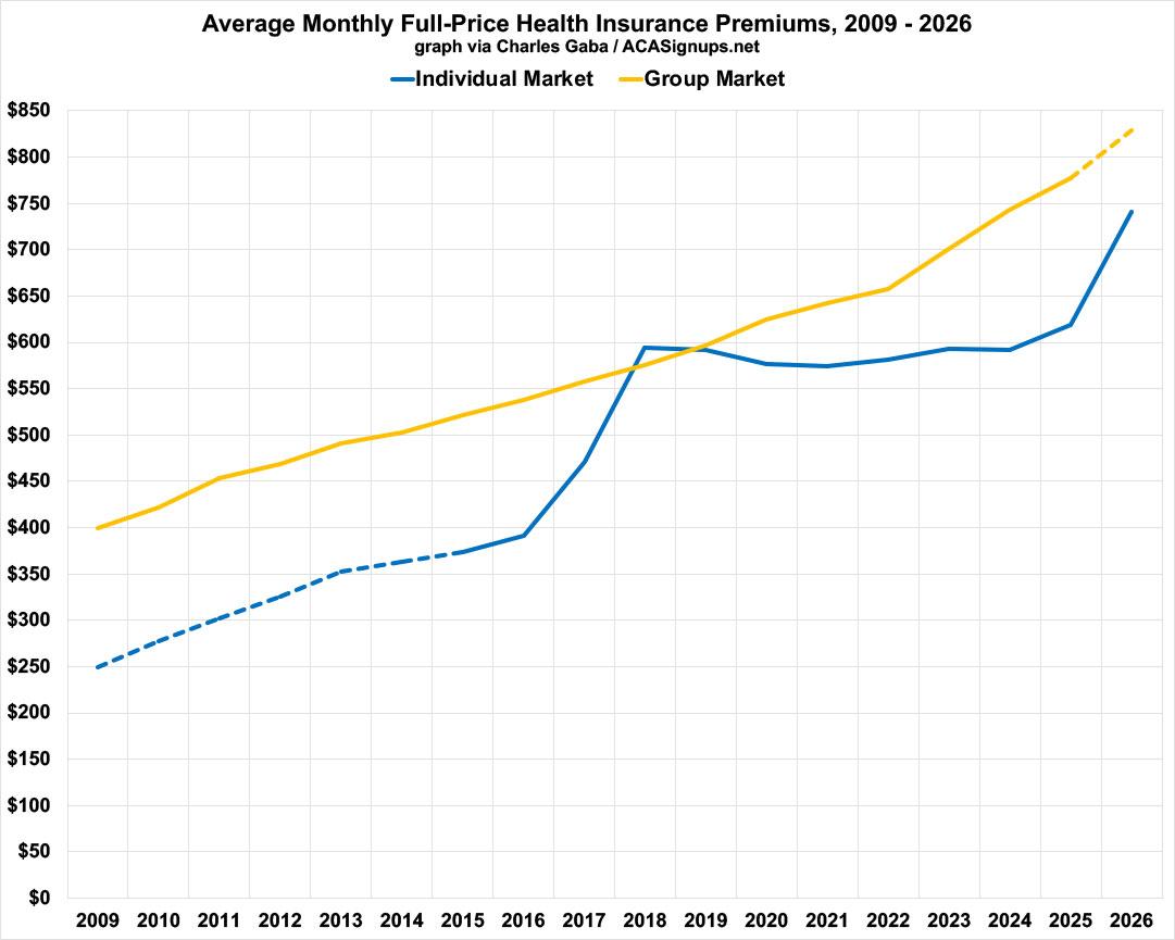 This changed starting in 2026, of course, as the enhanced tax credits expired & net ACA premiums shot way up, from around $113/mo to $178/mo on average.