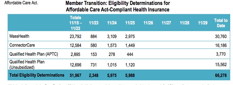 Massachusetts continues to kick butt this time around in general, but I particularly like that they're providing a daily breakout of their enrollment data. Check today's out, which includes both Wednesday and Thanksgiving Thursday: