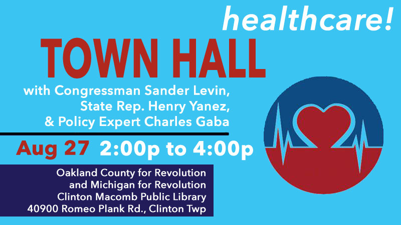 If so, come on out on Sunday, August 27th, and join Congressman Sander Levin, State Representative Henry Yanez and myself as we explain what the latest craziness is regarding the ACA, the GOP attempts to repeal and/or sabotage it and healthcare policy in general from 2:00pm - 4:00pm at the Clinton Macomb Public Library: