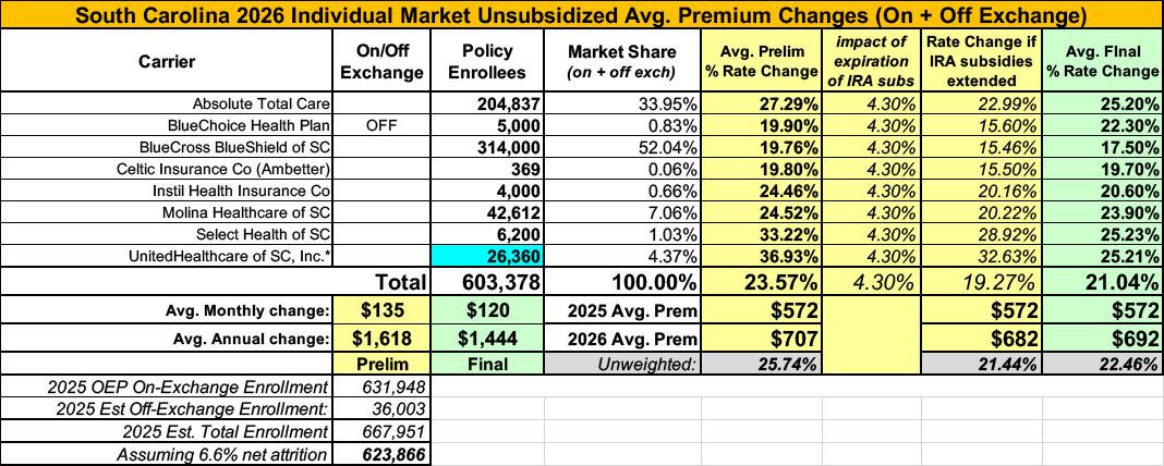 In South Carolina specifically, all of this will result in average gross premiums hikes of 21.0%.