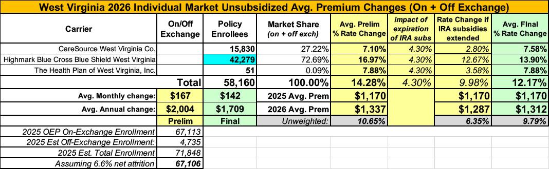 UPDATE 9/25/25: Since West Virginia will have the highest gross ACA premiums in the country next year, I decided to dig even further to find an even more extreme edge case.