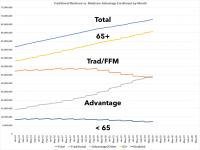 Every month for years now, the Centers for Medicare & Medicare Services (CMS) has published a monthly press release with a breakout of total Medicare, Medicaid & CHIP enrollment; the most recent one was posted in late February, and ran through November 2022.