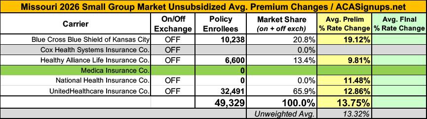 2026 Rate Changes - Missouri: +22.8%; ~417,000 enrollees looking at massive rate hikes in January